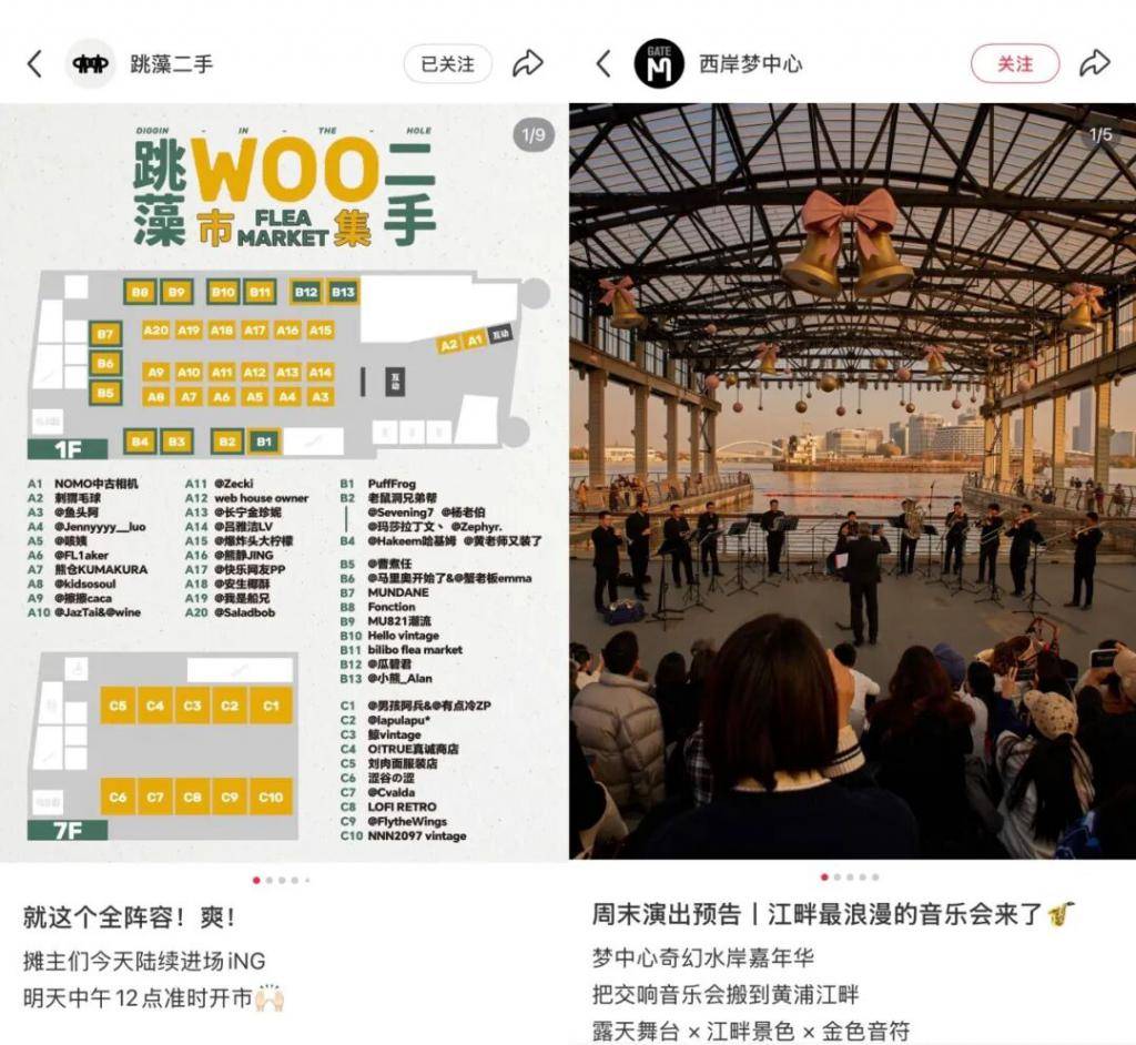 所以,非标商业的流量吸引力极度取决于运营方的选品招商、内容运营能力。2025 年,我们也在上海看到一些非标商业体在探索新的解法,例如上海的 HAI550 在过去一年每个月至少会有两场市集活动,覆盖香氛、宠物、博主闲置、二手中古、农产品等不同主题;西岸梦中心 2025 年举办了多次音乐、电影演出,骑行、夜跑、滑板、滑冰等运动相关项目;C · PARK 在 2025 年底打造了一个地下音乐公园,引入覆盖不同音乐类型的 livehouse 和俱乐部。